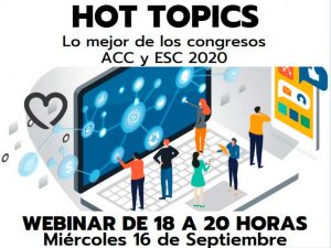El próximo 16 de septiembre, de 18 a 20 horas, tendrá lugar nuestro webinar “Hot Topics / Lo mejor de los congresos ACC y ESC 2020”, en e...